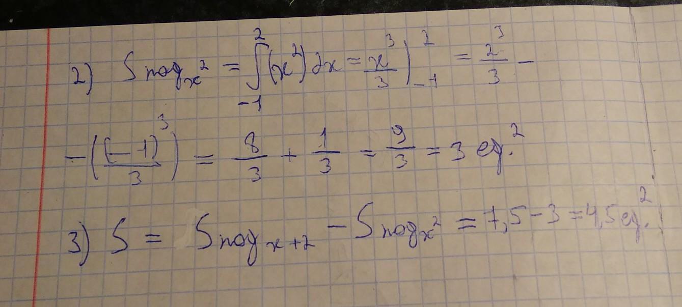 3) Вычитаем из площади под прямой площадь из под параболы.