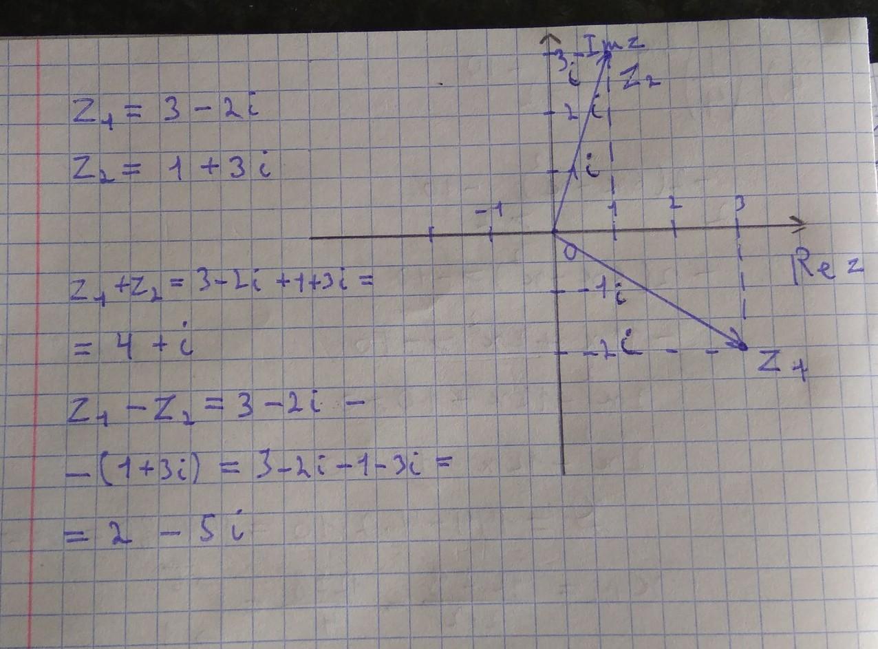 Дайте определение комплексного числа. Запишите два любых комплексных числа. Постройте эти два комплексных числа на координатной плоскости. Найдите сумму и разность этих комплексных чисел.