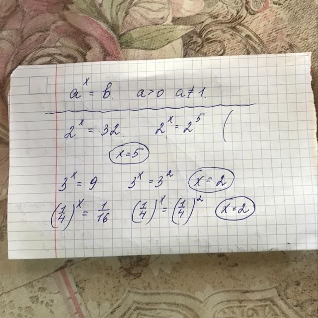 Приведите пример показательного уравнения вида ax = b, решением которого является положительное число. Запишите решение этого уравнения.