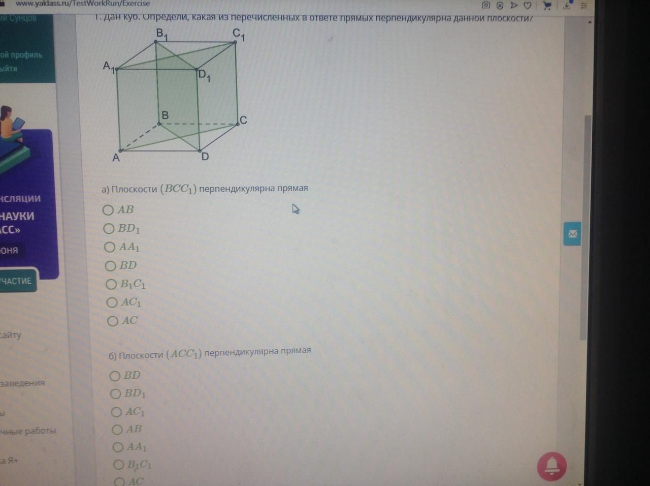 б) плоскости (ACC1) перпендикулярна BD (1)