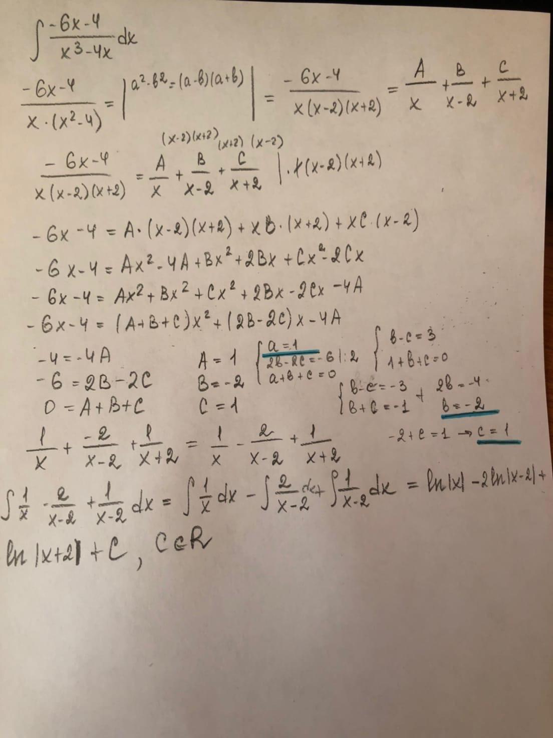 Найти интеграл от рациональной дроби, предварительно представив в виде суммы правильных простейших рациональных дробей.