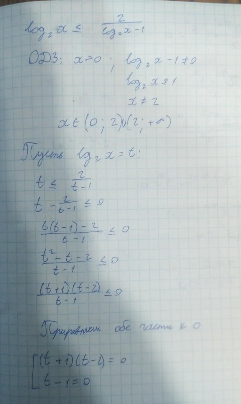 Решите неравенство, пожалуйста: log2x ≤ 2/log2x-1
