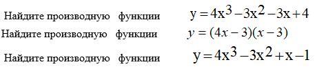1) y' = (4x^3 - 3x^2 - 3x + 4)' = 12x^2 - 6x - 3