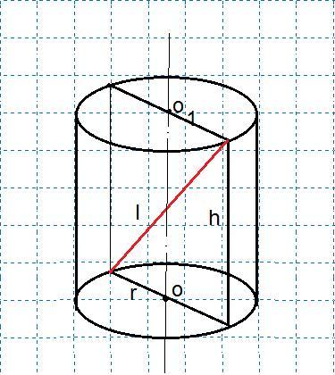 1. Высота цилиндра равна (по теореме Пифагора) h=√(l²-D²), где l - диагональ осевого сечения, а D - диаметр основания цилиндра.