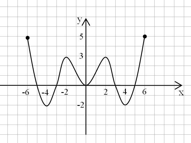 Определите наибольшее и наименьшее значения функции: Выберите один ответ: 1. у наим. = -6; у наиб. =6 2. у наим. = -2; у наиб. =3 3. у наим. = 0; у наиб. =5 4. у наим. = -2; у наиб. =5 5. у наим. = 0; у наиб. =3