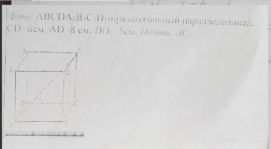 ПошДано abcda1b1c1d1 прямоугольный параллелепипед cd 6 см ad 8 см dd1 5 см найти ac1аговое объяснение:
