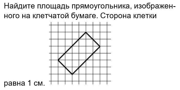 Найдите площадь прямоугольника, изображенного на клетчатой бумаге. Сторона клетки равна 1 см.