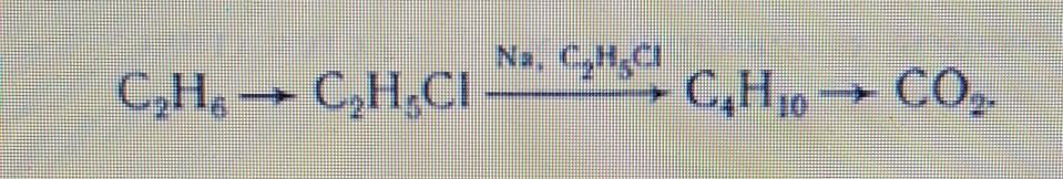 2C2H5Cl + 2Na => C4H10 + 2NaCl (Синтез Вюрца)