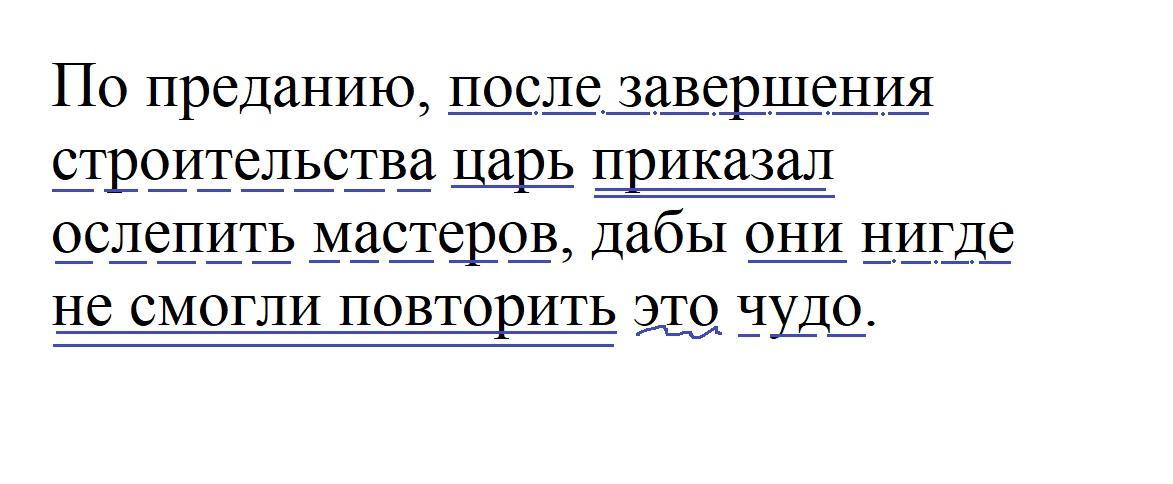(1) Покровский собор необыкновенно красив. (2) Он был построен в середине 16 века по указу Ивана Грозного в ознаменование победы над Казанским ханством. (3) Его возводили в 1555-1561 годах русские зодчие Барма и Постник. (4) По преданию, после завершения строительства царь приказал ослепить мастеров, дабы они нигде не смогли повторить это чудо. (5) Конечно, Иоанн Васильевич был на многое способен. (6) Но справедливости ради надо сказать, что никакого фактического подтверждения этой «кровожадной истории» не существует.
