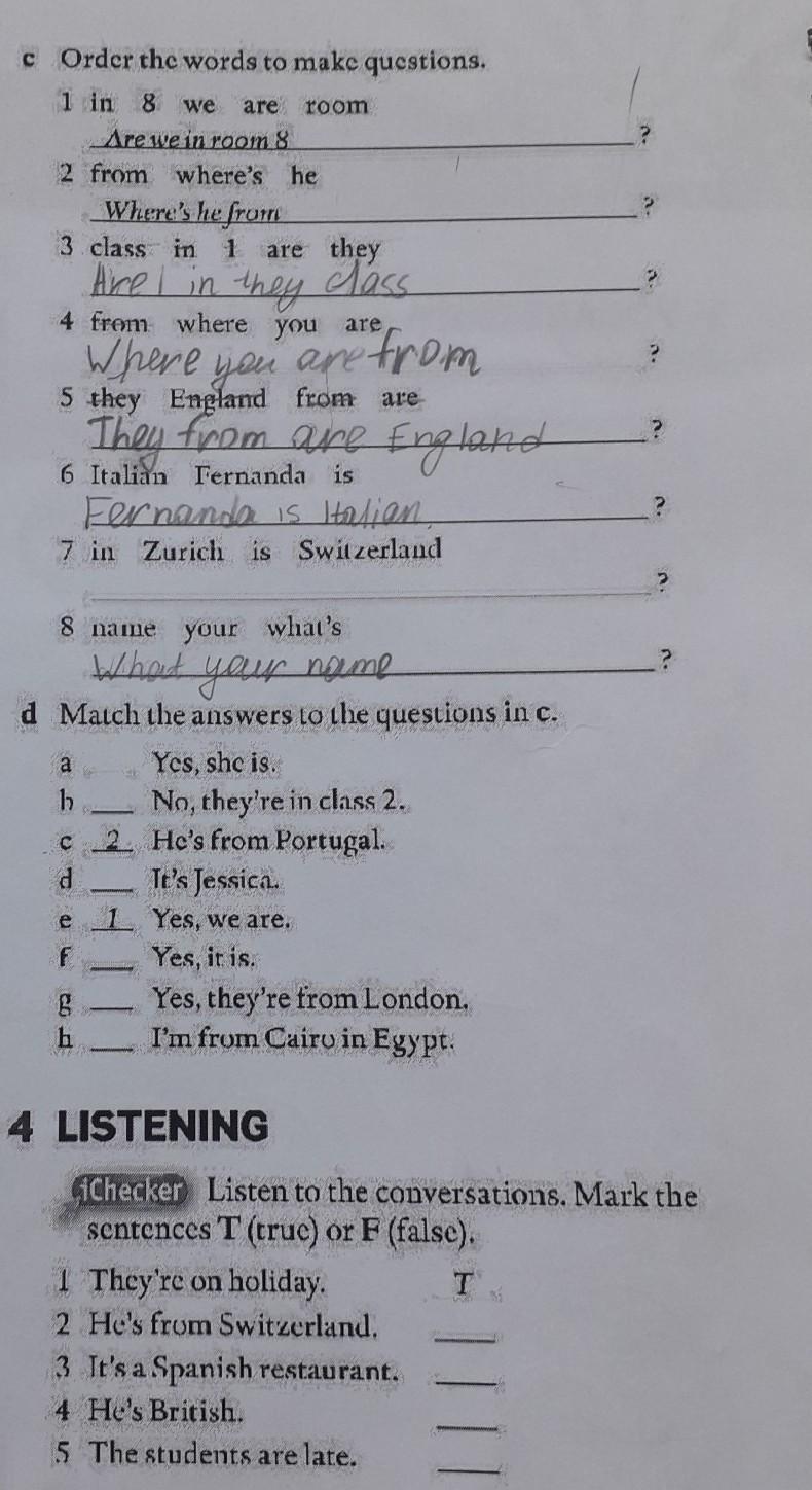 3. Are they in class 1? (там 1, а не I, тоже исправь)