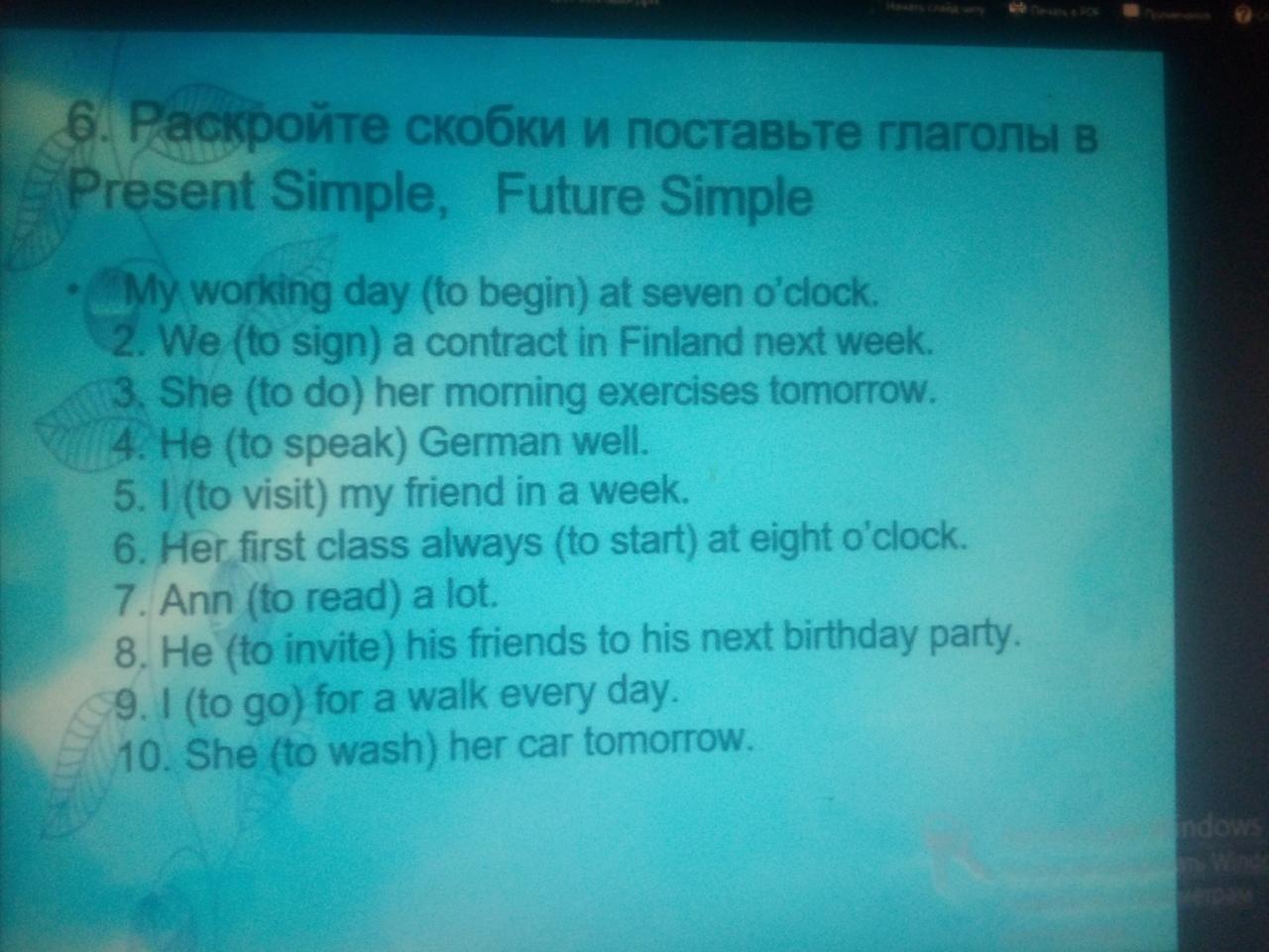Помогите пожалуйста Расскройте скобки и поставьте глаголы в pressent simple и future simple