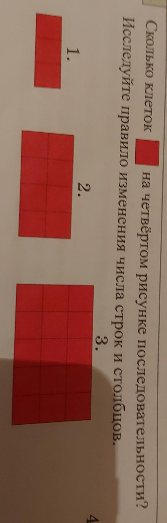 Сколько клеток на четвёртом рисунке последовательности? Иследуйте правило изменения числа строк и столбцов