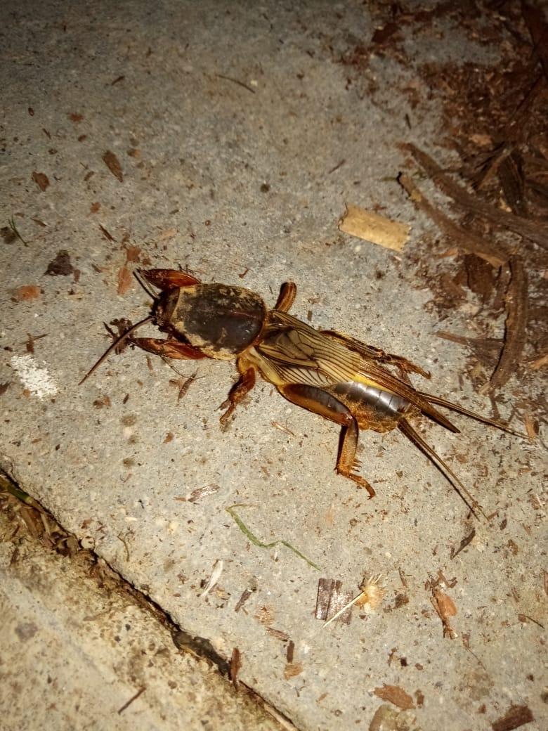 Ребят, есть тут опытные биологи? На даче постоянно в разных местах кто-то стрекочет, в траве не видно, хоть и стоишь прямо над местом, откуда издается звук. Недавно ночью сфоткал такого стрекотальщика на плитке, никто не знает, что это за жук? Огромный сверчок? Или, может быть, медведка? Даю 100 баллов