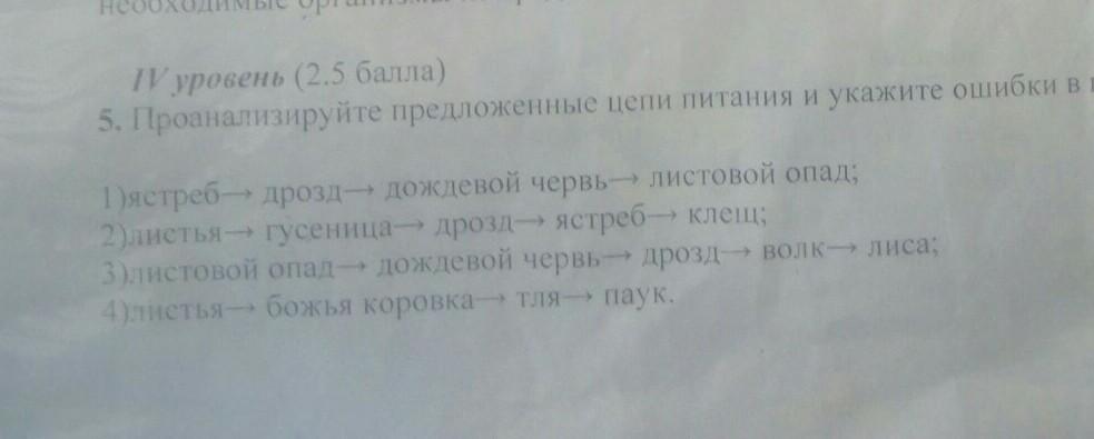 В 2. должно быть наоборот,в 3 волк-лиса-дрозд-дождевой червь-листовой опад.