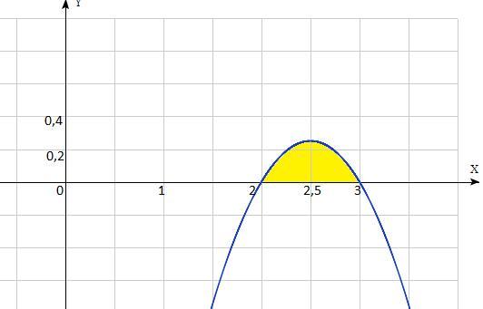 x²-5x+6=0. По т Виета х₁+х₂=5 ,х₁*х₂=6 . Значит х₁=2, х₂=3 и пределы интегрирования от 2 до 3: