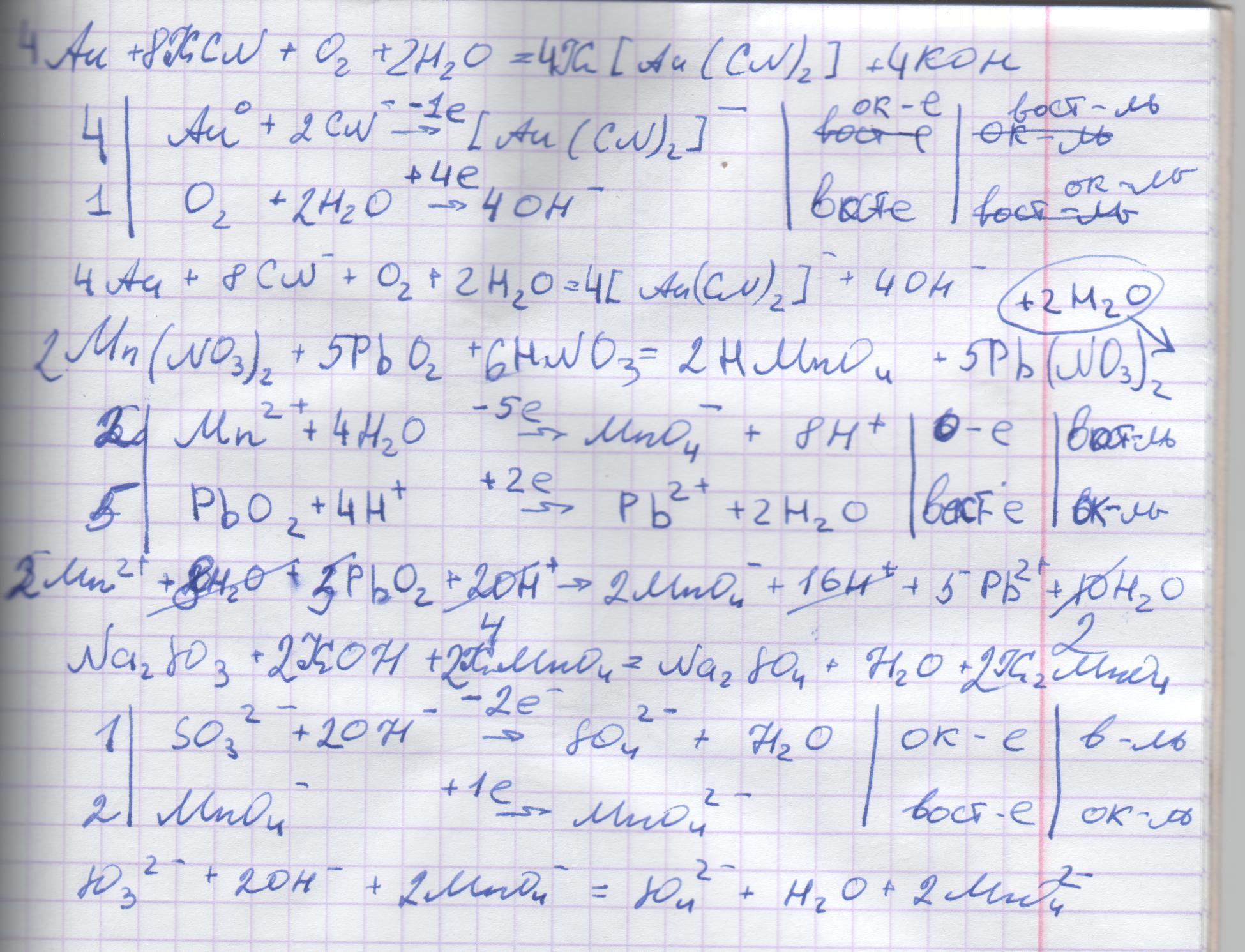 а) Au + KCN + O2 + H2O → K[Au(CN)2] + KOH