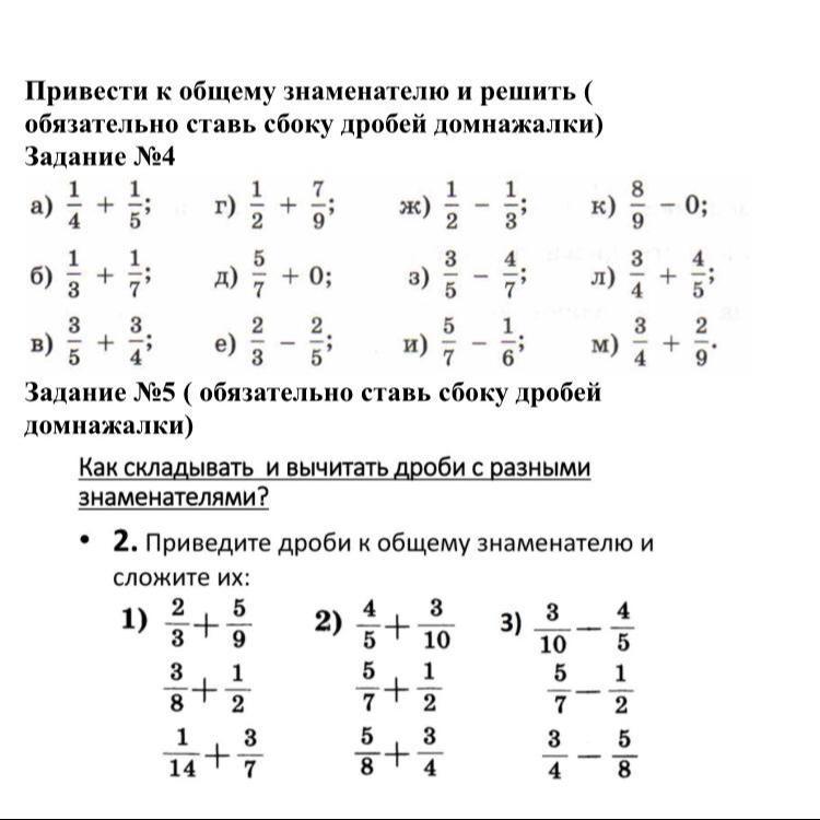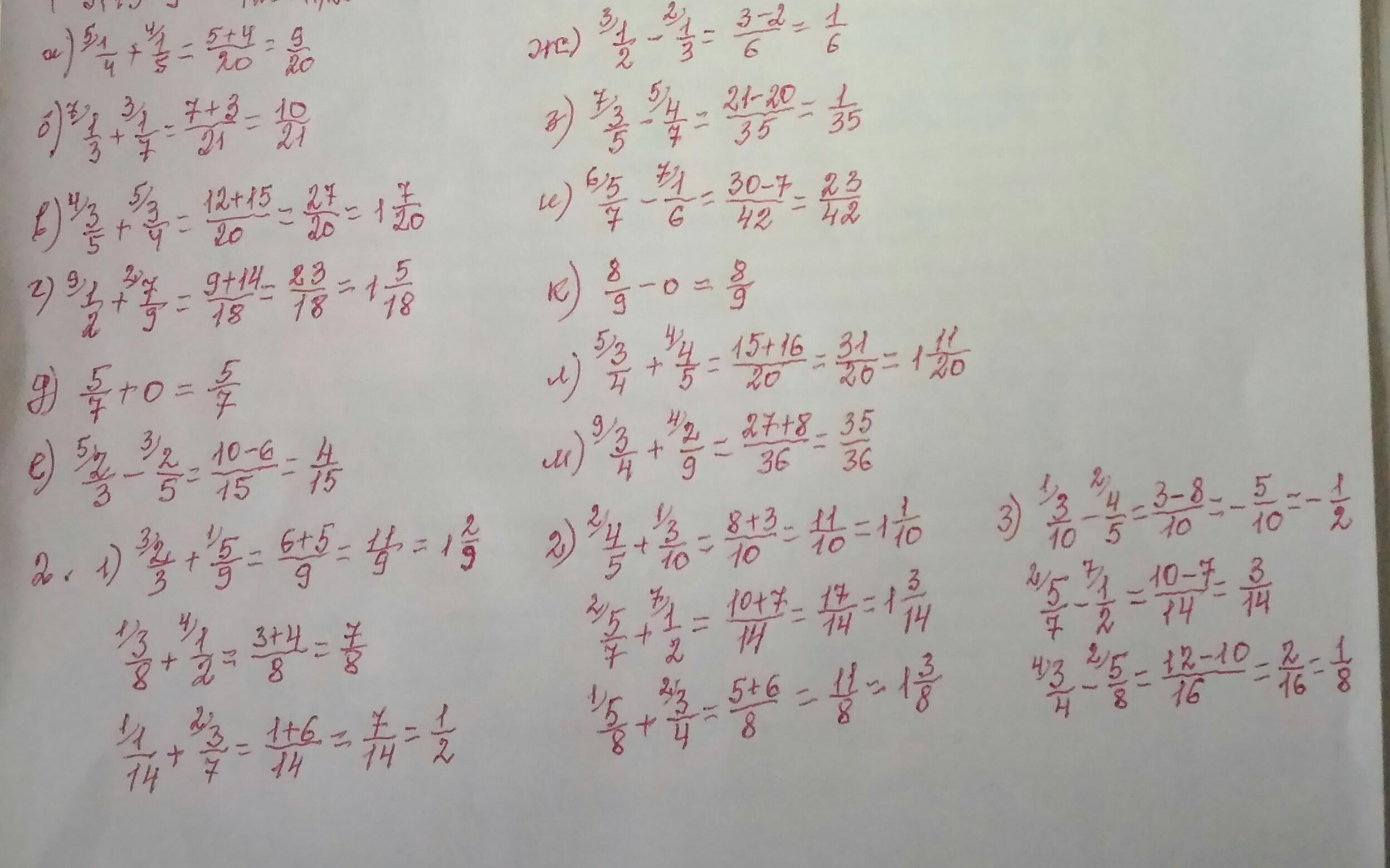 а) 9/20; б) 10/21; в) 1 7/20; г) 1 5/18; д) 5/7; е) 4/15;