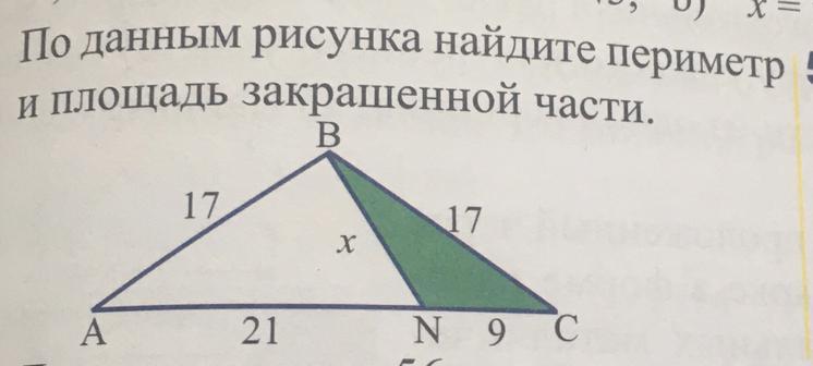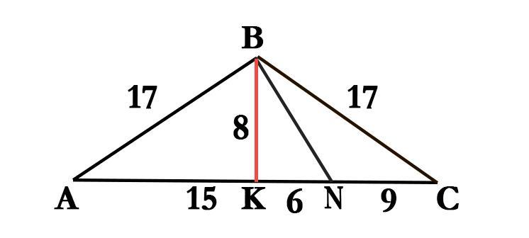 Рассмотри треугольник ВКN, ВК = 8, КN = 15 - 9 = 6