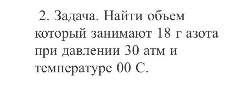 V = 18·10⁻³·8,31·273 / (28·10⁻³·30·10⁵) ≈ 0,49·10⁻³ м³ или приблизительно 0,5 литра