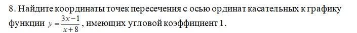 А теперь подумаем, нам необходимо найти координаты точек пересечения с осью ординат этих касательных. А это не что иное, как