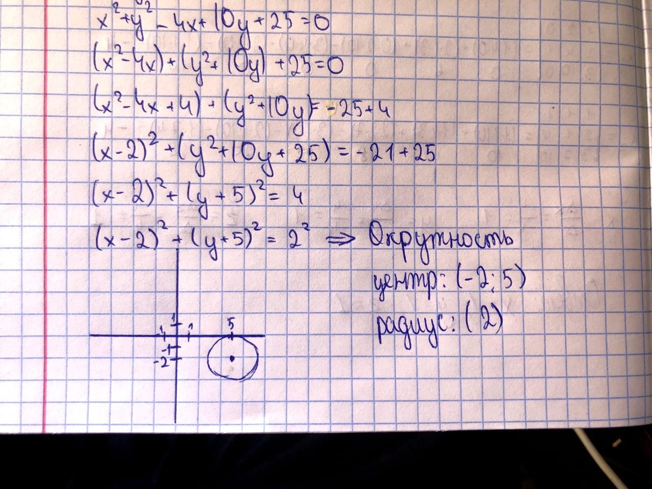 Это окружность, центр которой имеет координаты (2;-5)