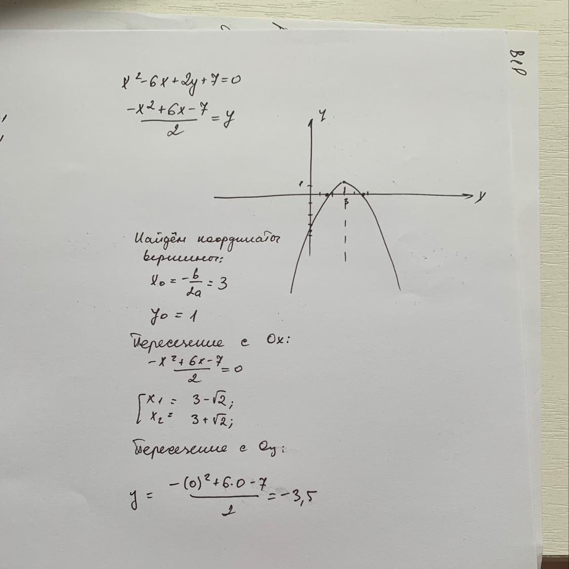 у=-0,5x²+3x-3,5 парабола ,ветви вниз.