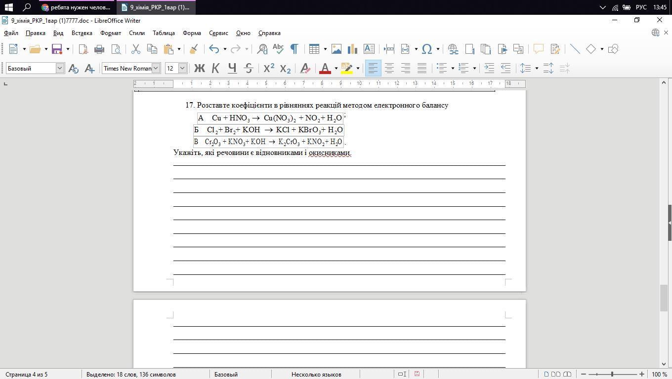 Cl₂⁰ + 2e⁻ → 2Cl⁻ | 2 | | 5 | - окислитель (восстановление)