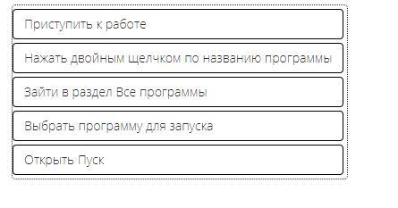 Установите последовательность открытия программы для выполнения задач пользователя.