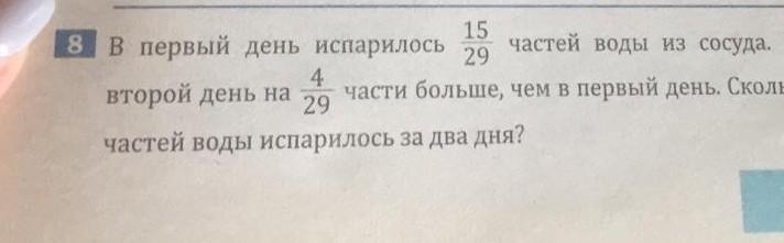 Відповідь:за ІІ дня испарилось 34/29 частей воды.