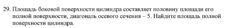 Площадь боковой поверхности конуса составляет половину площади его полной поверхности, диагональ осевого сечения - 5. Найдите площадь полной поверхности цилиндра.