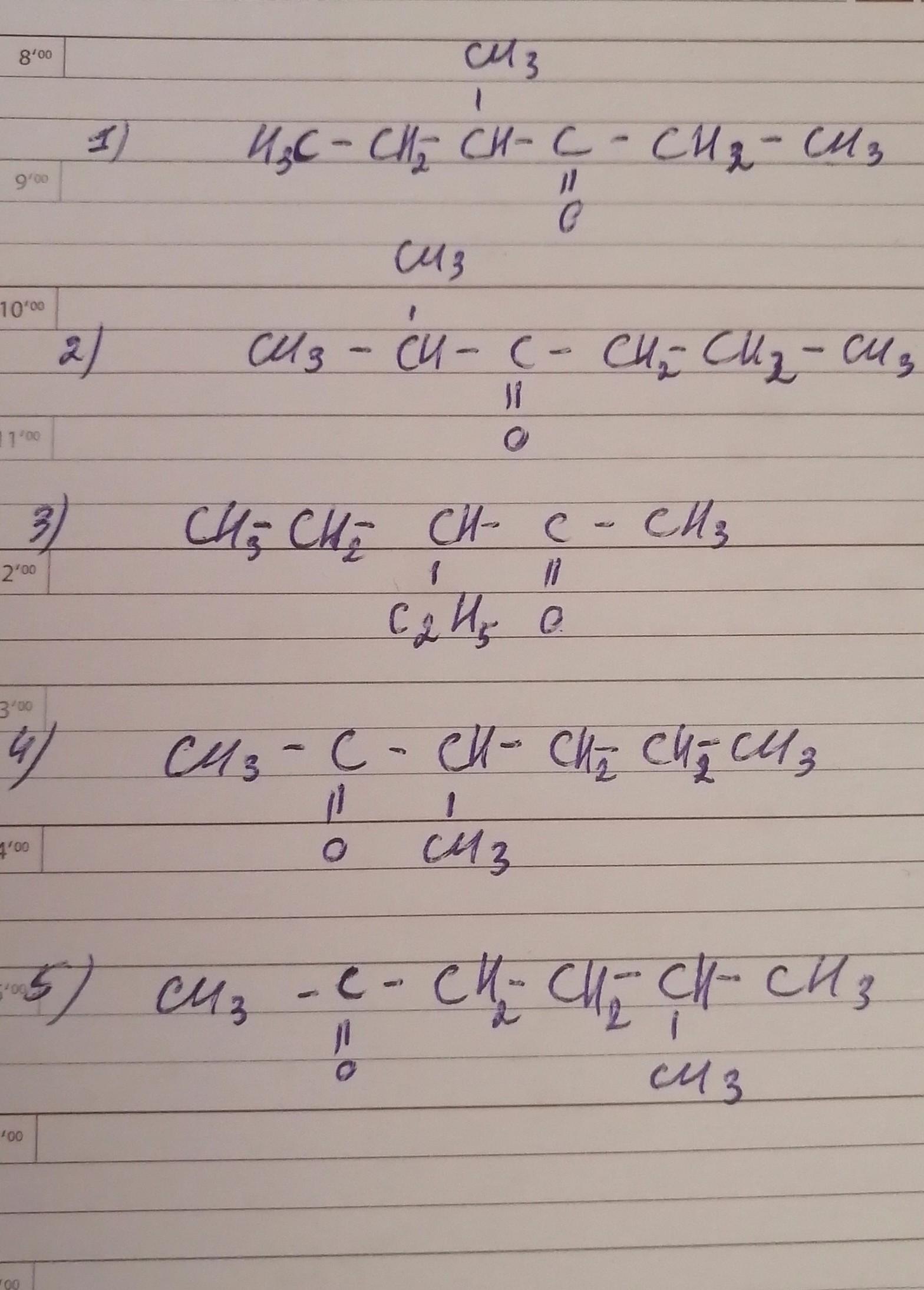написать 5 изомерных между собой кетонов, все кетоны должны иметь по одному заместителю, дать названия веществам.