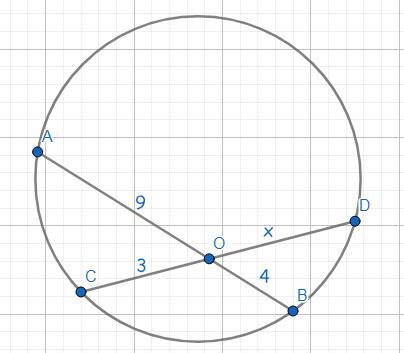 Хорды окружности AB и CD пересекаются в точке O. Если AO=9, OB=4 и CO=3, найдите длину хорды CD. (ответ 15, мне нужно объяснение)
