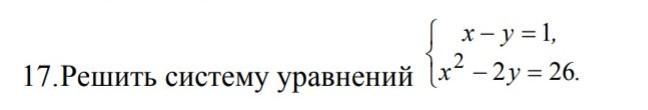 x-y=1 ⇒ x=1+y ⇒ (1+y)²-2y=26