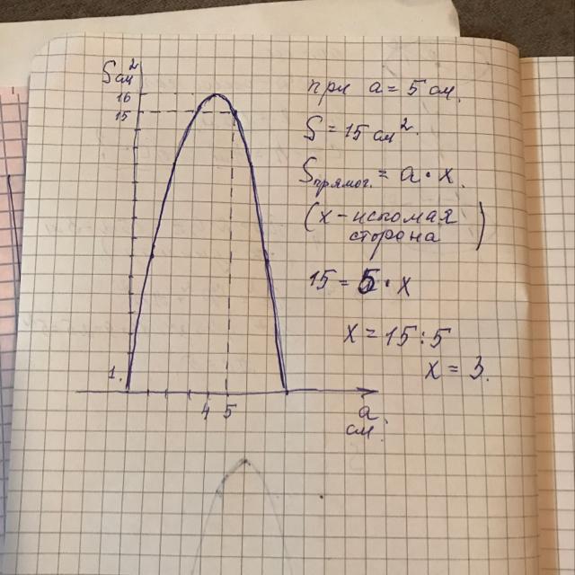 Точке а = 5 соответствует точка S = 15 см2 на графике