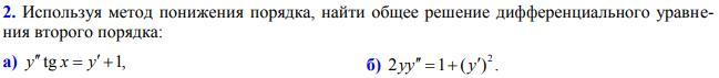 Используя метод понижения порядка, найти общее решение дифференциального уравнения второго порядка