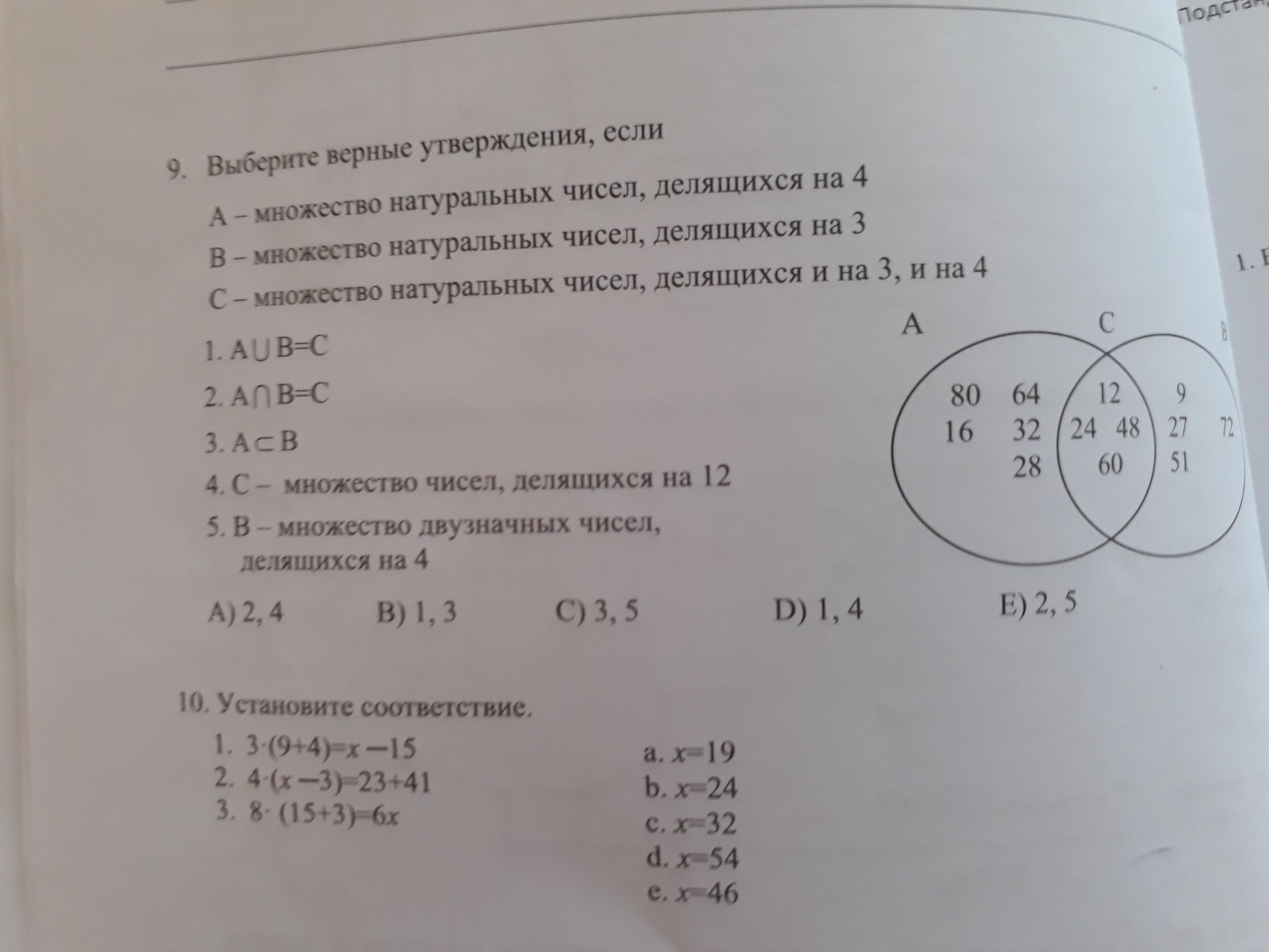 4. С – множество чисел, делящихся на 12 (если число делится и на 3, и на 4, значит, оно автоматически делится на 3•4=12).