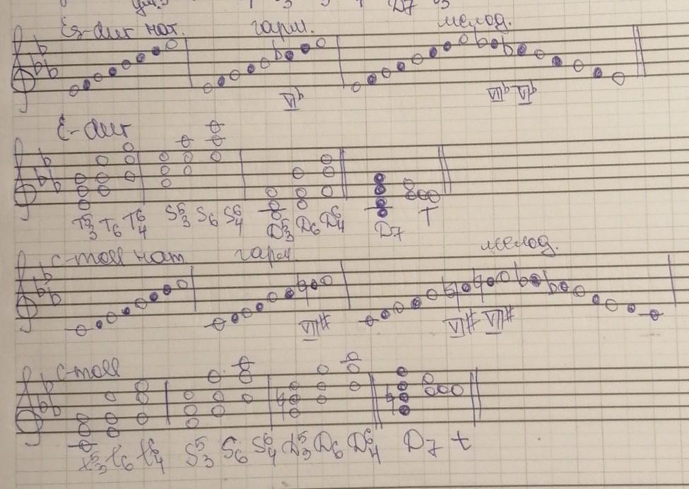 гаммы ми бемоль мажор и до минор три вида в них построить тонические субдоминантовое доминантовое трезвучие и их обращение доминантсептаккорд с разрешением