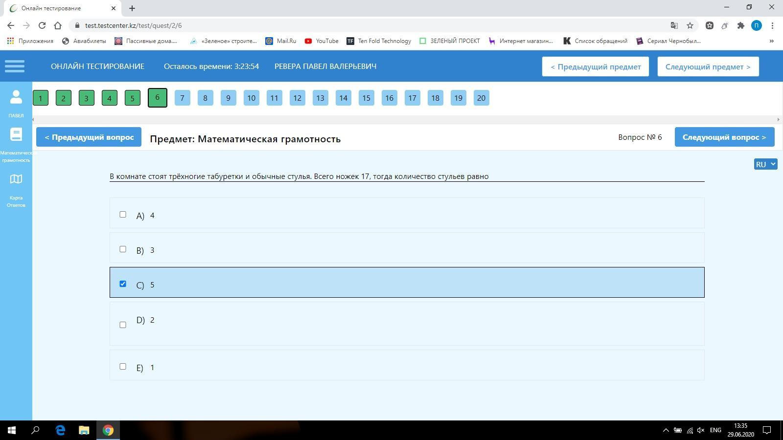 стул (4 ножки) + табуретка (3 ножки) = 7 ножек (или одна пара - стул+таб)