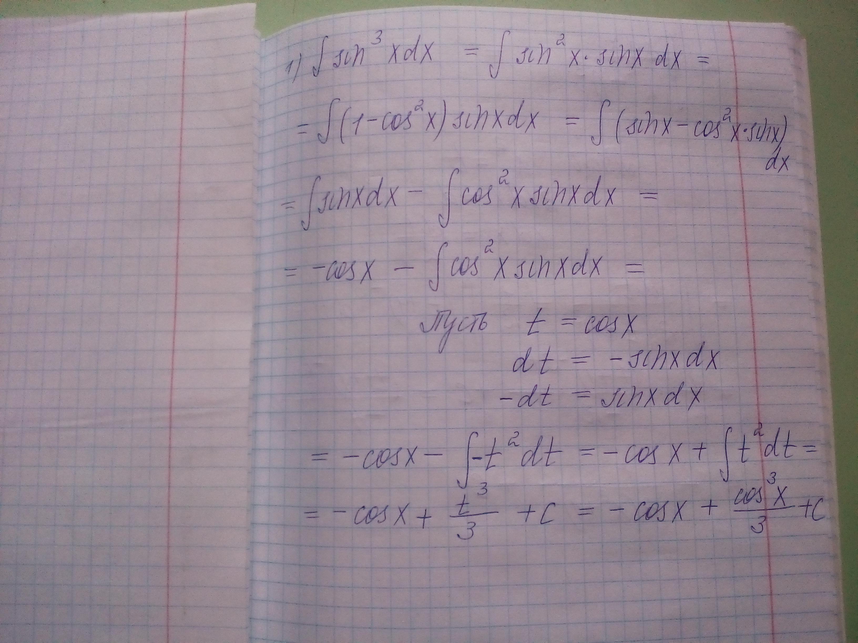 1) ∫sin³xdx=-∫sin³x(dcosx)=-∫(1-cos²x)(dcosx)=-cosx+((cos³x)/3)+c