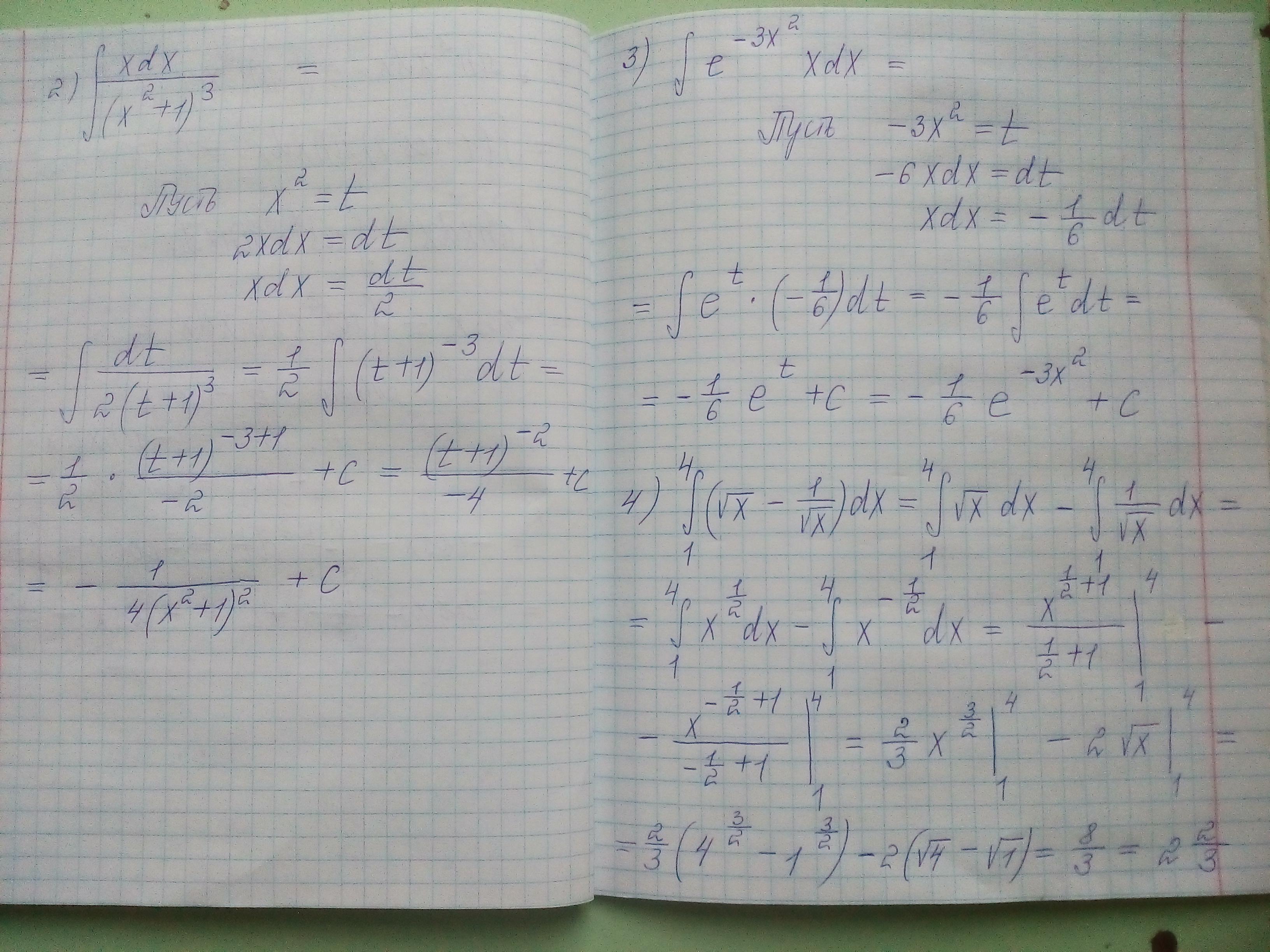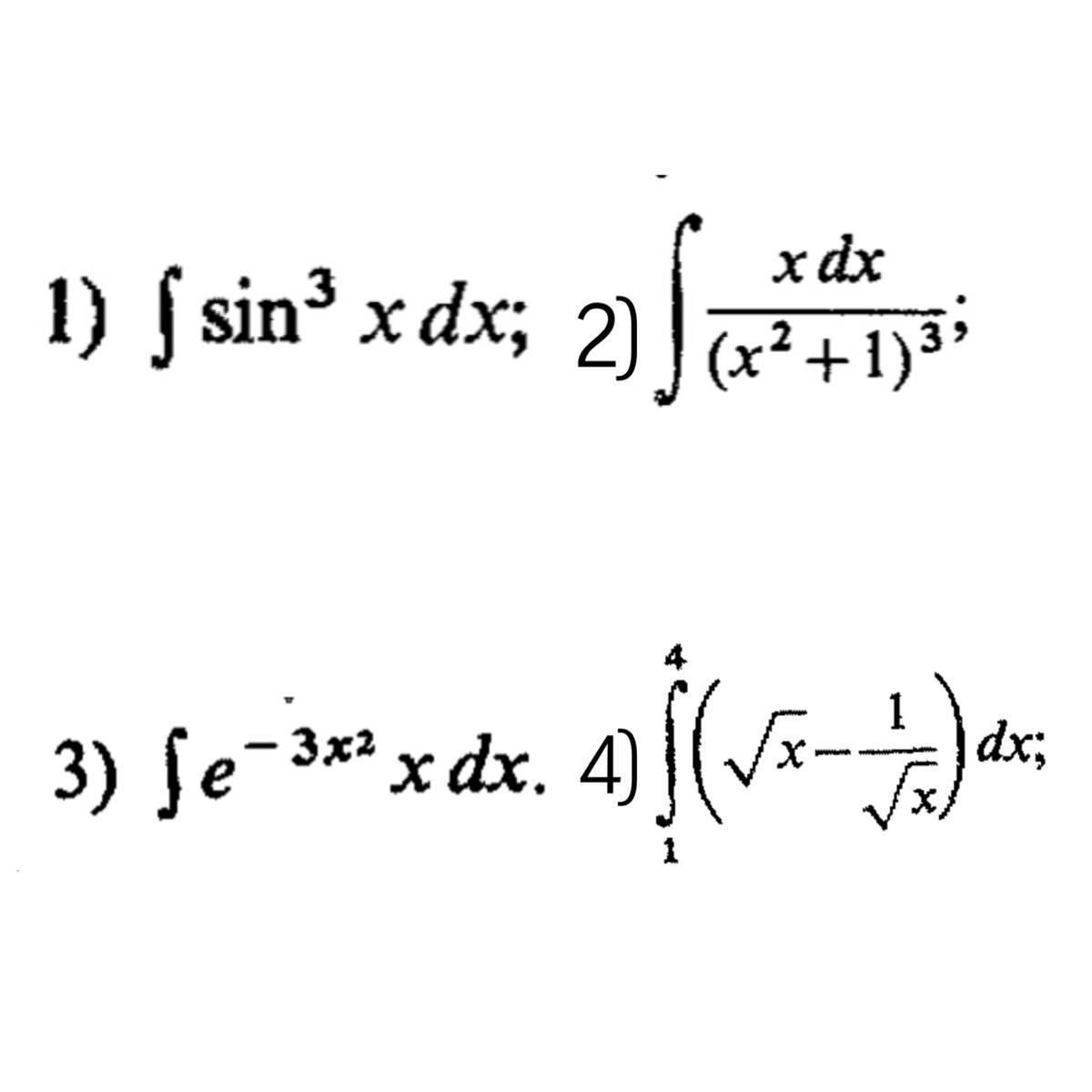 3) ∫e⁻³ˣ²xdx=-(1/6)∫e⁻³ˣ²d(-3x²)=-e⁻³ˣ²/6+c