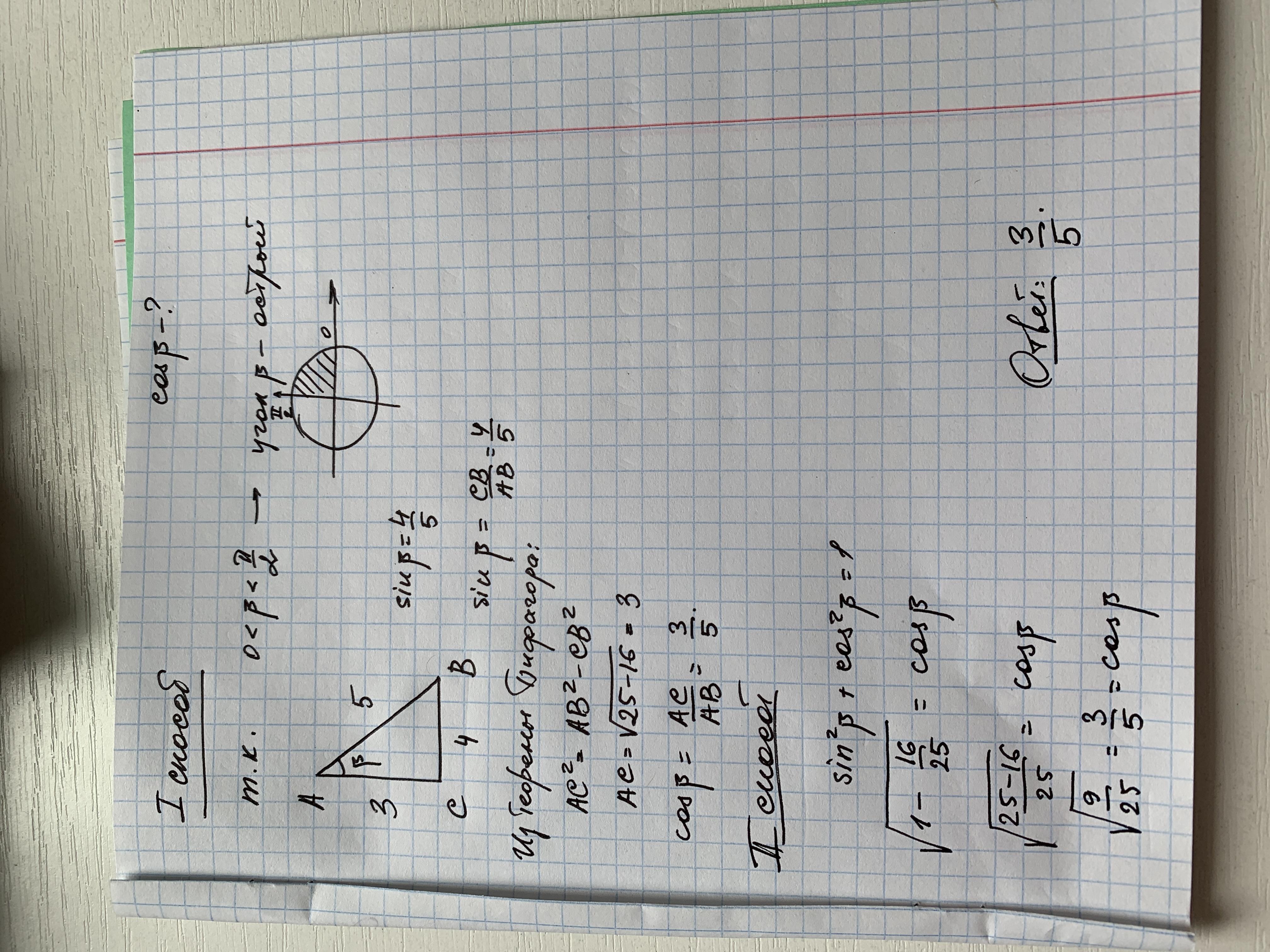 Найти значение cosβ если sinβ=4/5 0<β<π/2