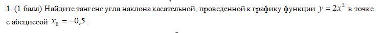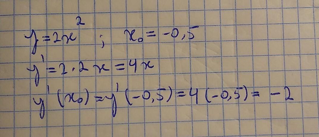 Тангенс угла наклона касательной к графику функции y=2x² в точке x0=-0,5 равен производной функции в заданной точке: