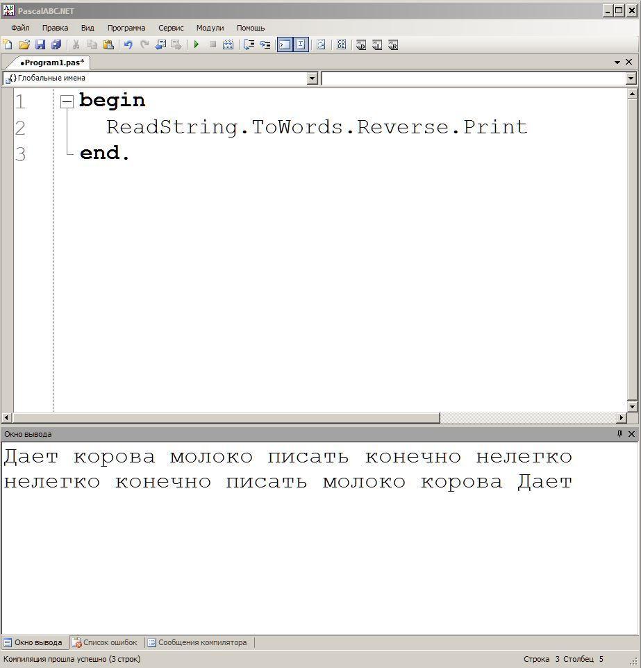 100 БАЛЛОВ!!!!!!! ПОМОГИТЕ ПОЖАЛУЙСТА Дана строка, состоящая из русских слов, разделенных пробелами (одним или несколькими). Вывести строку, содержащую эти же слова, разделенные одним пробелом и расположенные в обратном порядке.