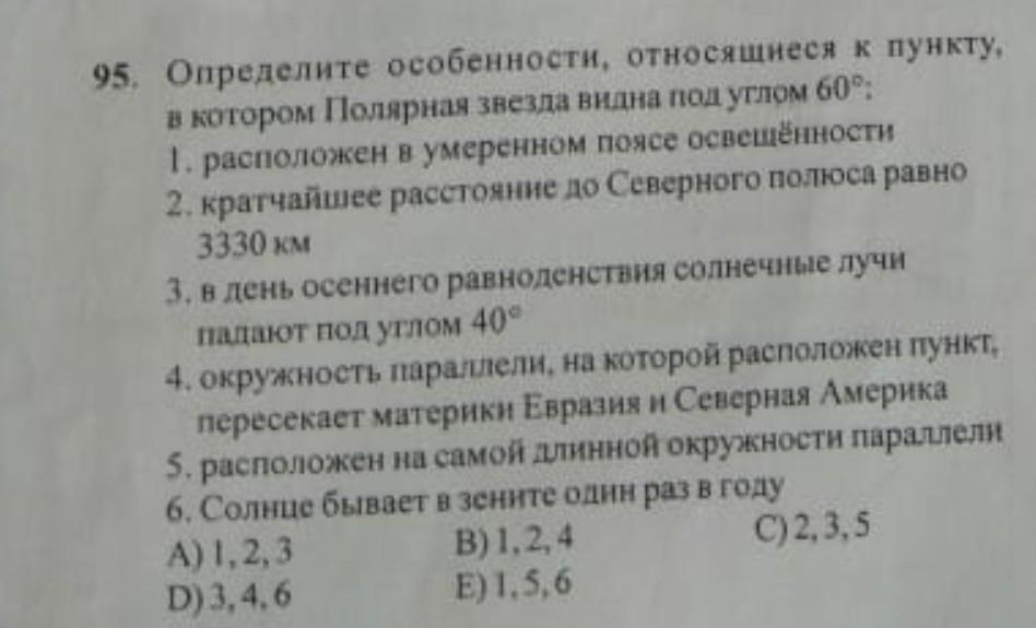 Опредилите особенности, относящиеся к пункту в котором Полярная Звезда видна под углом 60(фотка выше)