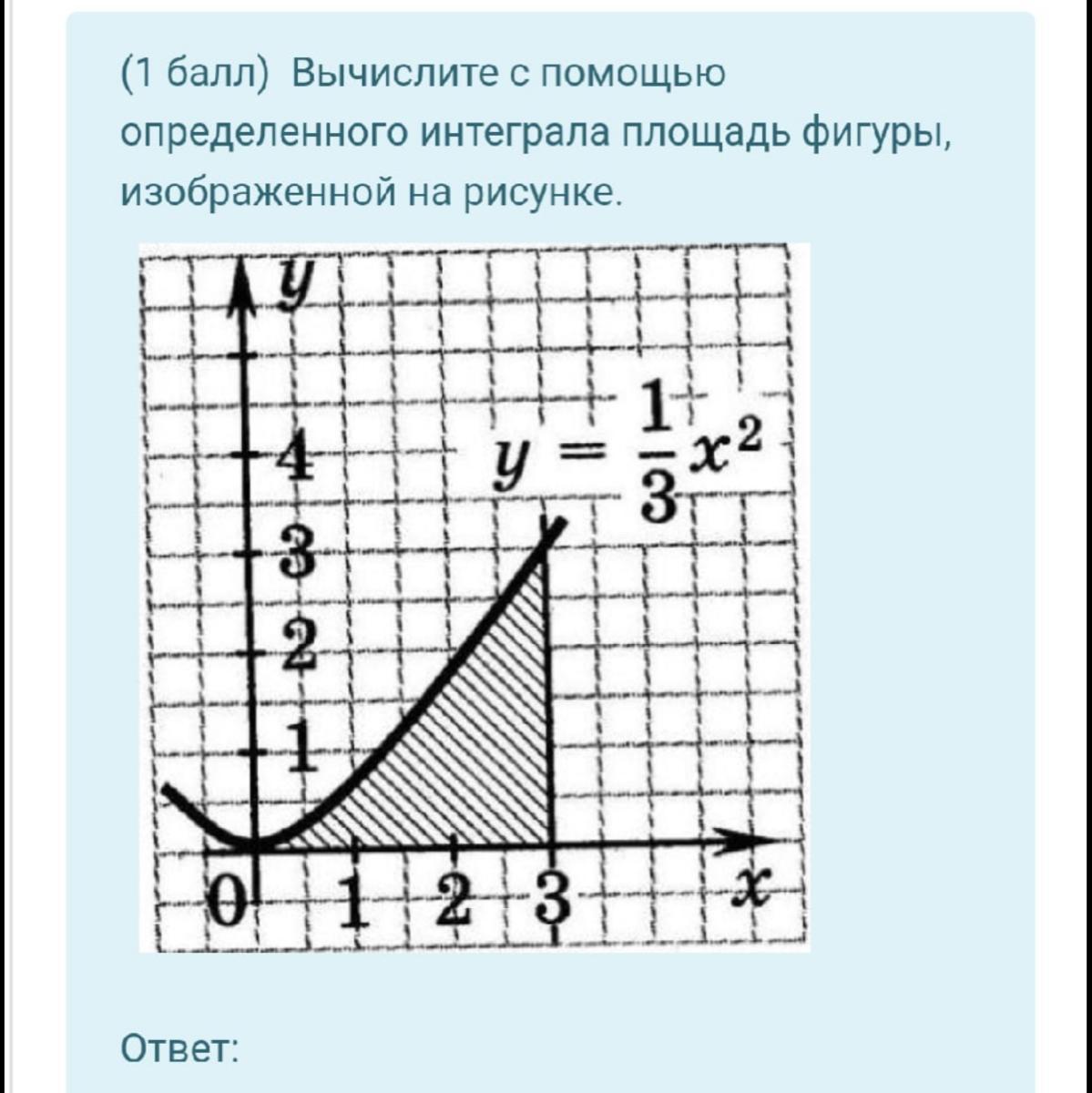 Область интегрирования ограничена сверху параболой у=(1/3)х², а снизу осью абсцисс (Ox) y=0. Пределы интегрирования от х=0 до х = 3