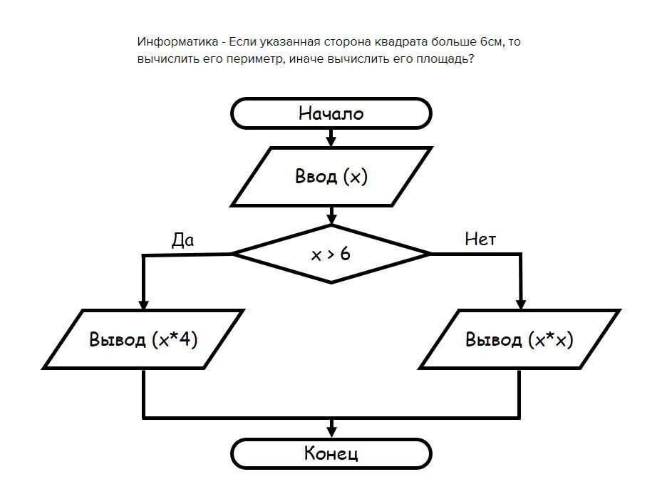 Информатика - Если указанная сторона квадрата больше 6см, то вычислить его периметр, иначе вычислить его площадь?