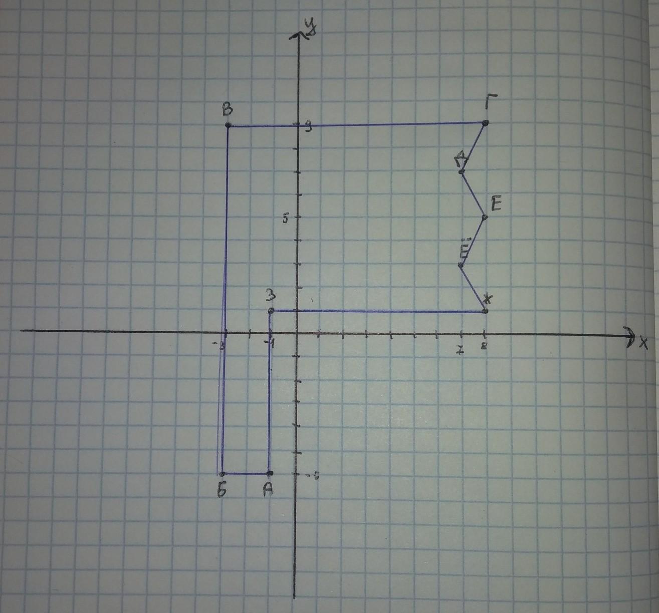 На координатной плоскости соедините последовательно точки в алфавитном порядке А(-1;-6) Е(8;5) Б(-3;-6) Ё(7;3) В(-3;9) Ж(8;1) Г(8;9) З(-1;1) Д(7;7)ПОМОГИТЕ РЕШИТЬ ПОЖАЛУЙСТА!!