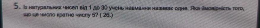Числа кратные пяти до тридцати : 5, 10, 15, 20, 25, 30 - 6 чисел. Значит вероятность 6/30.