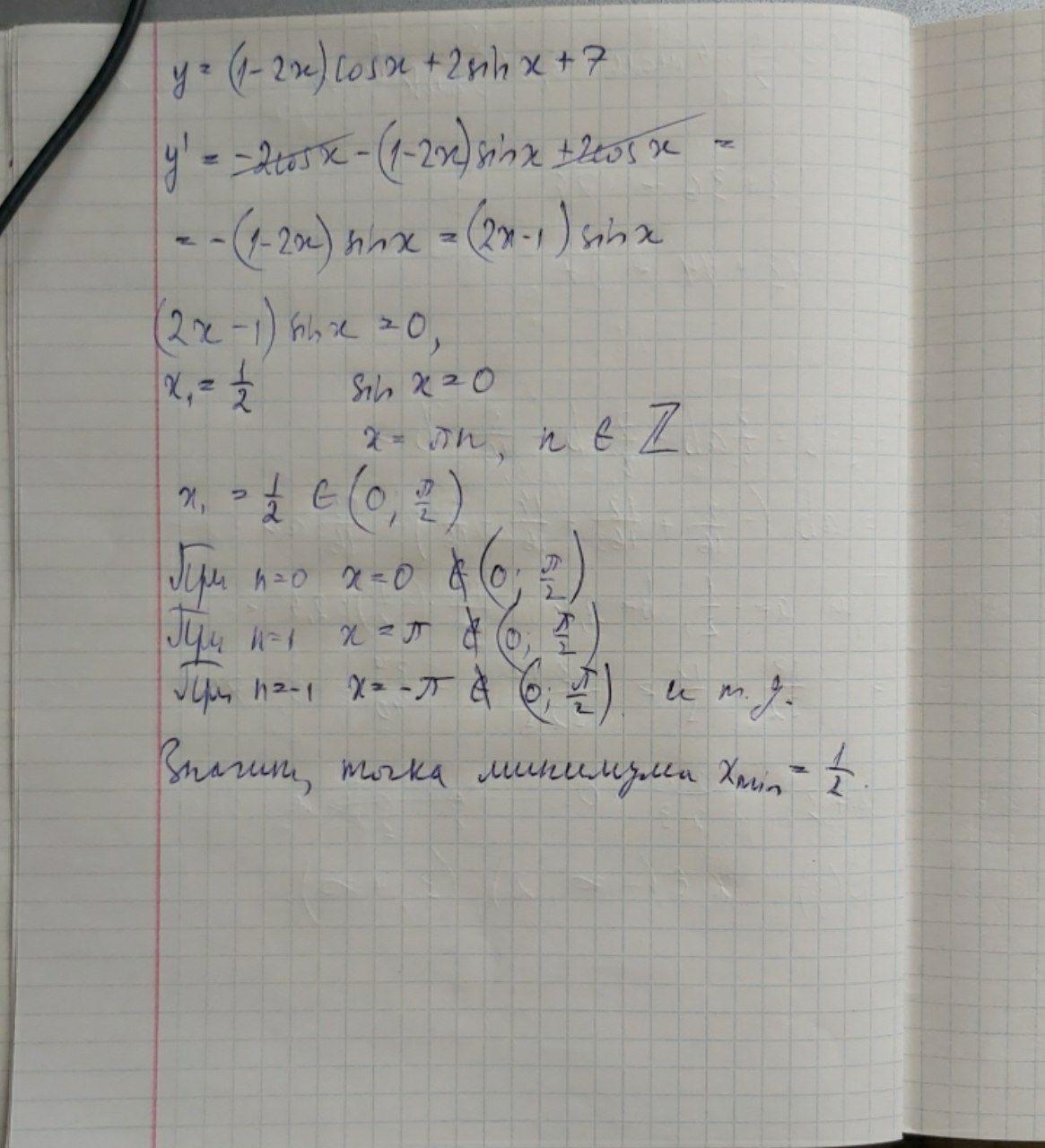 Найдите точку минимума функции y=(1-2x)cosx+2sinx+7