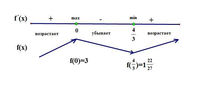 Теперь там, где стрелки образуют "горку", - точка максимума (на фото это точка 0), а там, где получилась "яма" - точка минимума (на фото это точка 4/3).